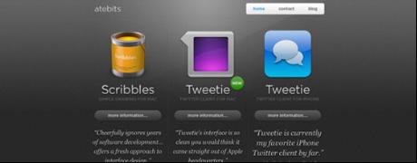 Atebits(http://www.atebits.com/)在网页文本中使用了文本阴影,这样就不需要使用图片了。它还使用了-webkit-transform和-webkit-transition来向这三个图标加入了一些动画,不过这些效果只有在支持webkit的浏览器中才能看到,比如Chorme和Safari。