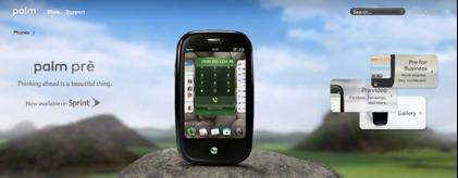 Palm(http://www.palm.com/us/products/phones/pre/)在其PalmPre产品页面上使用了一幅精美的图片来作为抬头。通过一种清新而动人的方式展示了其产品。