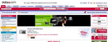 Dabs(http://www.dabs.com/)同样使用了标签页,但同时还在页面左侧使用了侧边栏,将网站内容的子分类予以显示,而且对不同的大类还用不同的颜色加以区分。